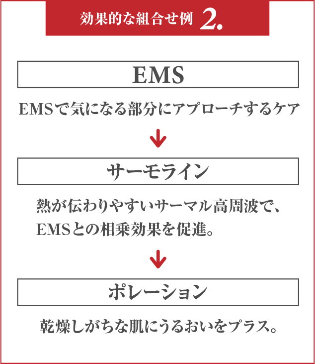 サーモラインは他のエステ機器との組み合わせで相乗効果を発揮し、メニューのバリエーションが広がるため、より多様なニーズに対応します。